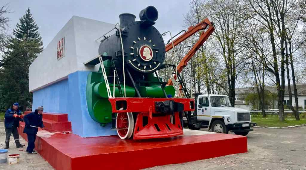 В Брянске привели в порядок стелу комсомольцам и паровоз в Фокинском районе