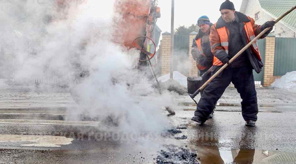 Брянские дорожники заделывают ямы «Кохером» и рециклерами