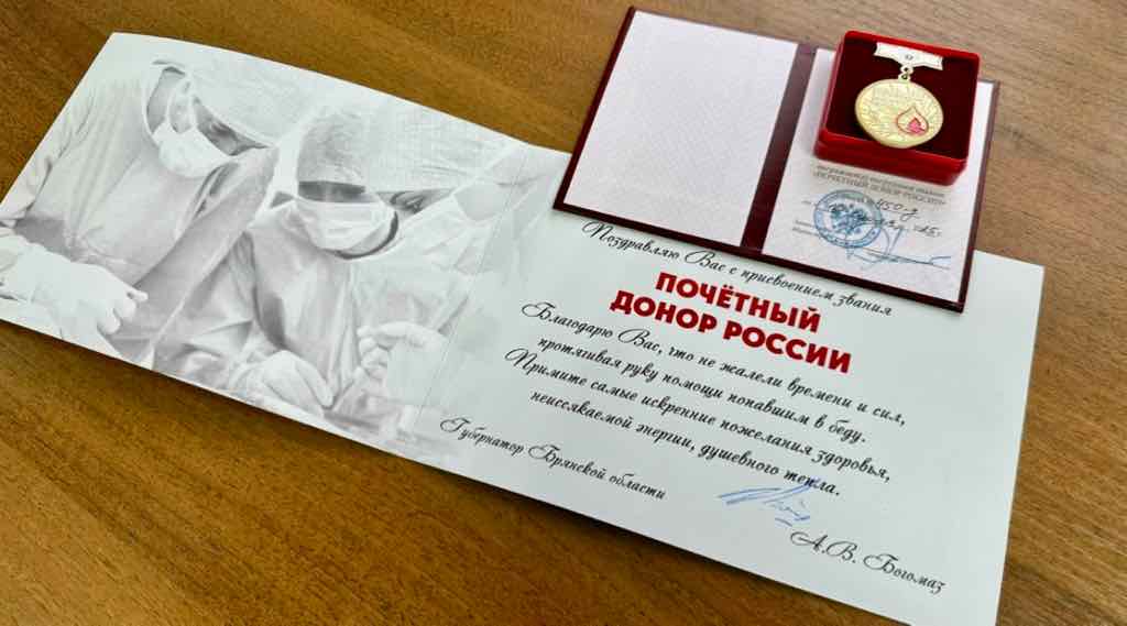 Почётными донорами России стали 37 брянцев
