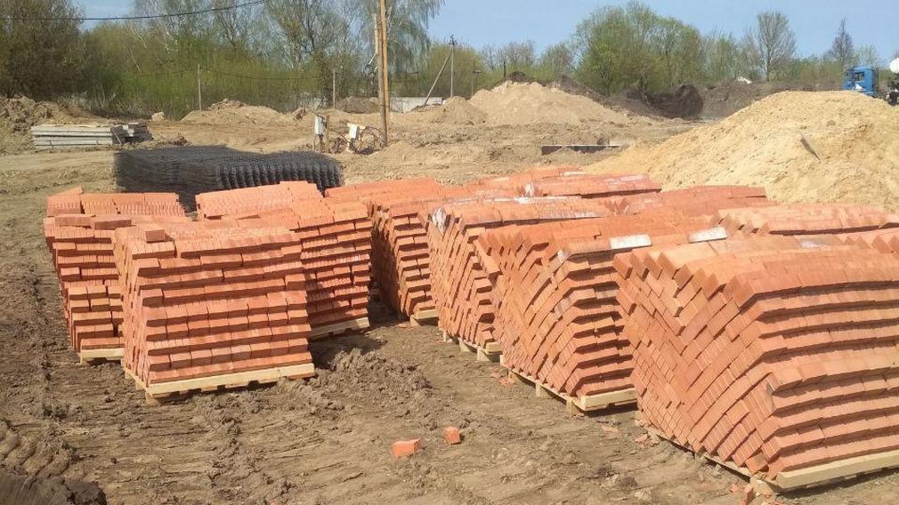 Просматриваются контуры будущего строения. На следующем этапе стартует строительство стен и перекрытий. Для этого на строительную площадку начали завозить строительные материалы.