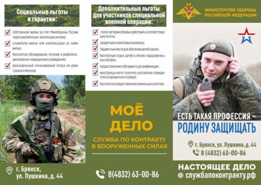 Министерство обороны Российской Федерации приглашает жителей города Брянска на контрактную службу в рядах Вооруженных Сил России.