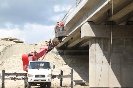 На подходах к мосту – новой дороге – выполнены работы по укладке щебеночного основания и нижнего слоя покрытия из асфальтобетонной смеси.