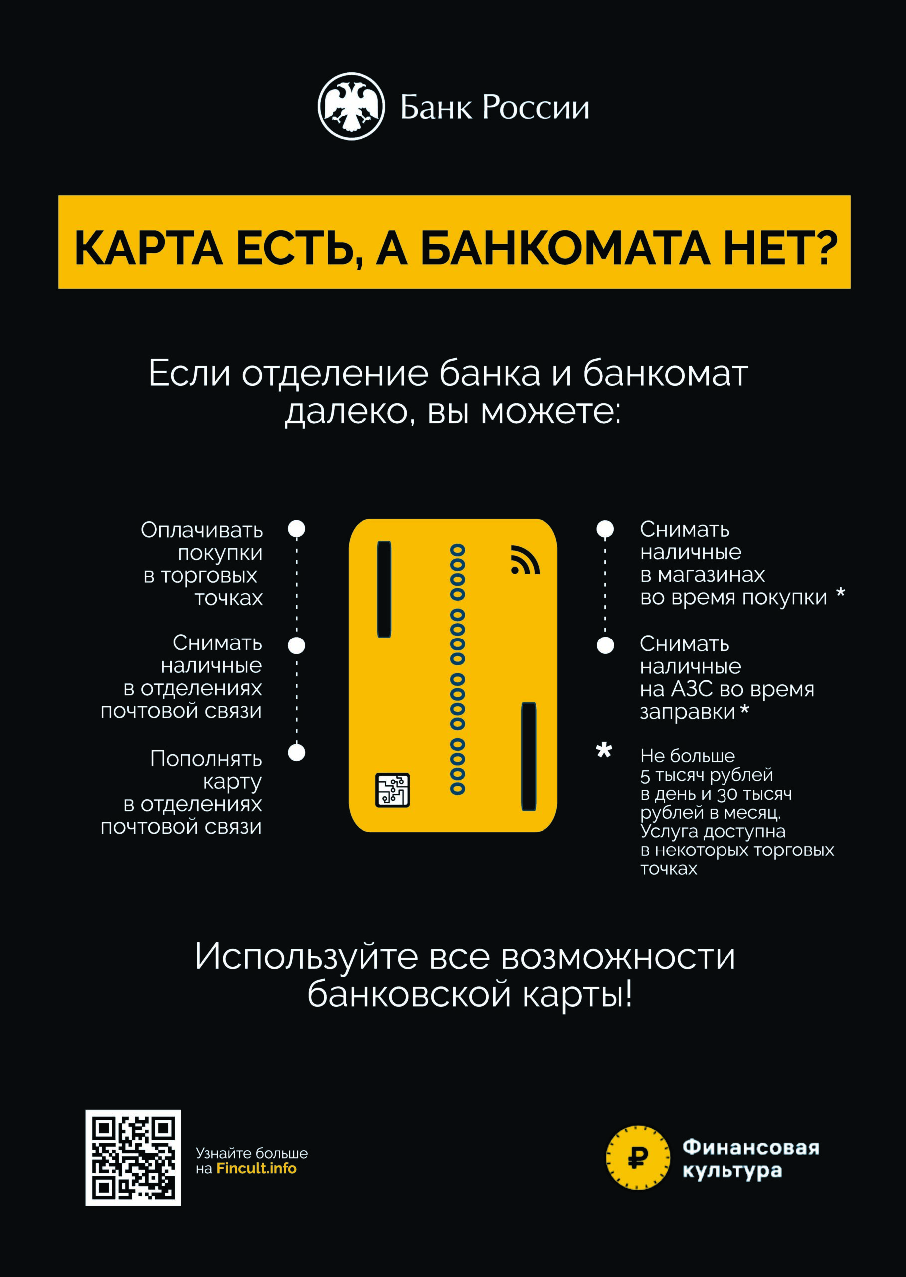 Узнать, доступен ли сервис, можно по специальной наклейке в торговой точке или на АЗС, по надписи на терминале оплаты. Также эту информацию можно получить у продавца. С одной карты можно снять не более 5 тысяч рублей в день и не более 30 тысяч рублей в месяц.