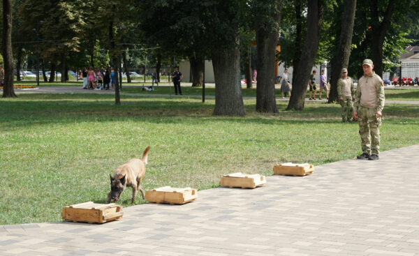 В программу также вошли выступления кинологов со служебными собаками. Специалисты кинологической службы продемонстрировали элементы дрессуры, различные приёмы задержания правонарушителей при помощи служебных собак, поиска взрывоопасных веществ.