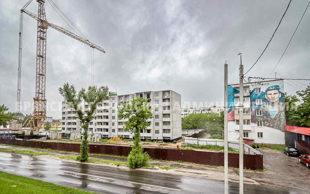 В Брянск на месте старого здания, признанного аварийным и снесенного, стремительно поднимается девятиэтажный дом. Работы на Московском проспекте осуществляет команда строителей из дружественной Белоруссии. Это уже второй многоквартирный дом, возводимый «Гомельским ДСК» в городе. Часть из 108 квартир в этом доме предназначена для детей, оставшихся без попечения родителей.
