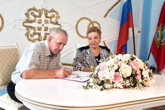 В отделе ЗАГС Карачевского района Брянской области царила атмосфера торжества и любви — супруги Валентина и Владимир Машины отмечали редкую и значимую дату — 55 лет совместной жизни, известную как изумрудная свадьба. Изумруд символизирует не только прочность и долговечность, но и мудрость, искренность и надежность, что полностью отражает историю этой пары.