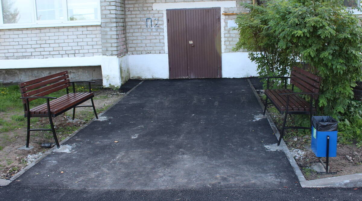 Строительные работы практически закончены: уложены бордюры, заасфальтированы дороги, парковки и подходы к жилым помещениям, смонтирована мебель и урны для отходов. Вскоре планируется обновить наружное освещение и обустроить рекреационную зону рядом с домом №31.