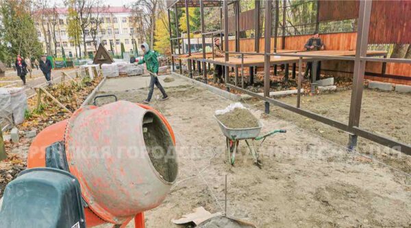 Все строительные работы осуществляются в рамках программы «Инициативное бюджетирование» с особой аккуратностью для сохранения зеленых насаждений парковой зоны.