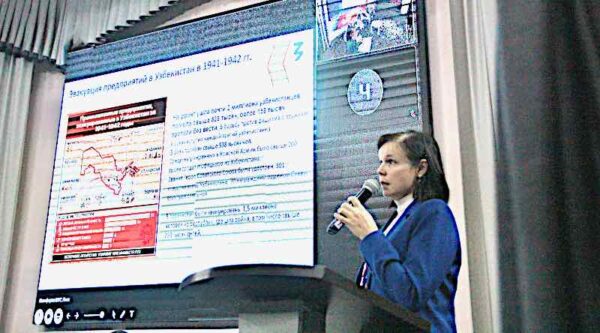 В рамках телемоста Брянск-Нальчик модератором секции выступила профессор Брянского государственного технического университета Елена Дергачева, представившая доклад о единении советских народов в военные годы.
