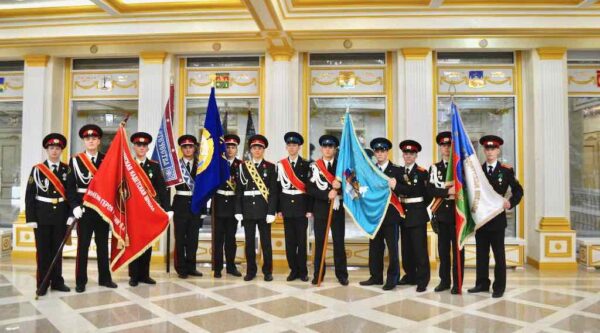 Курсанты из смоленского военно-патриотического центра «Вымпел» передали священную реликвию брянским кадетам, после чего знамя будет храниться поочередно в кадетских корпусах области, а нести почетный караул у него будут лучшие курсанты.