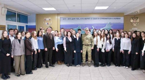 В ходе живого общения студенты задавали вопросы о патриотизме, борьбе с диверсиями и личных качествах защитника Отечества, а также узнали о программе «Время героев» для подготовки участников СВО к государственной службе.