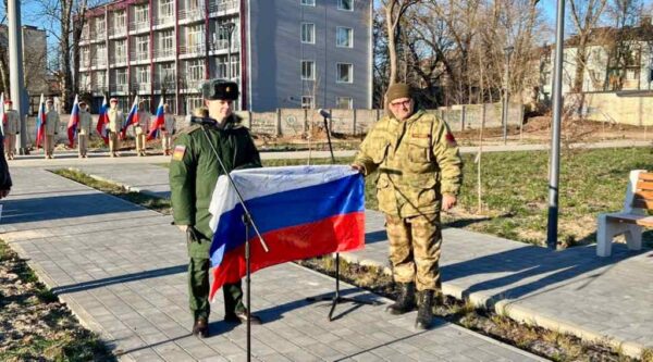 В рамках церемонии было поднято государственное знамя Российской Федерации и подведены итоги Года защитника Отечества.