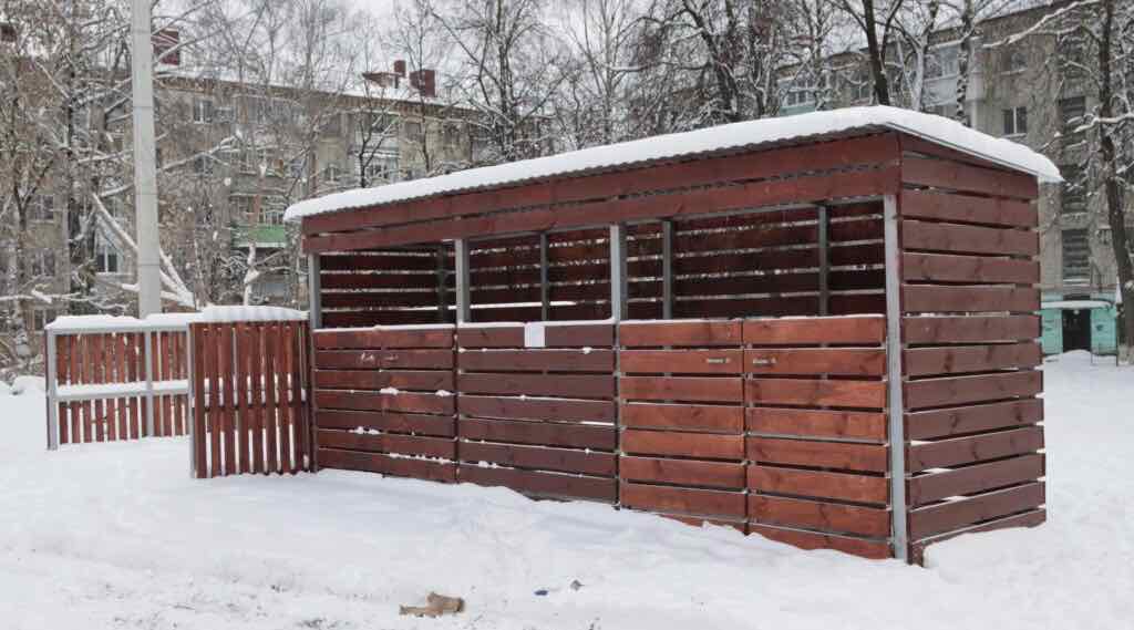 Современные контейнерные площадки оборудуют бетонным основанием, реечным корпусом, навесом и ...