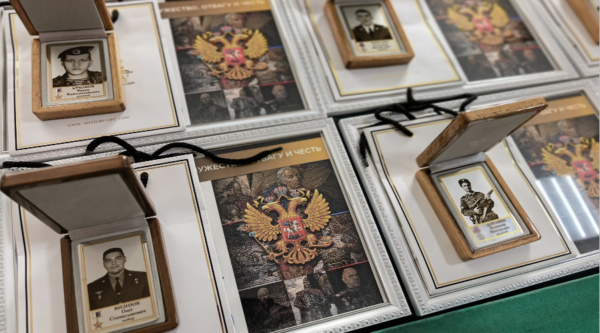 Затем, в рамках социального проекта «Они сражались за Родину. Летопись» состоялось вручение памятных наградных жетонов родителям погибших военнослужащих и сотрудников. На каждом жетоне с одной стороны размещена фотография героя, его имя и звание, а с другой стороны — краткое описание героического поступка.