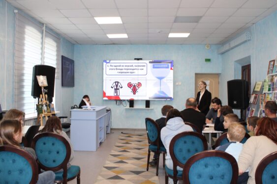 Для взрослых и молодежи в читальном зале состоялась командная интерактивная игра «Сила России – в единстве народов». В ней приняли участие как взрослые, так и молодежь, включая ребят из клуба «СПЕКТР» и студии мультипликации «Солнышко», а также семьи с детьми. Пять увлекательных раундов проверили знания участников по истории, культуре и науке России, способствуя развитию командного духа. Раунды включали: «Быстрые вопросы» на эрудицию, «Внимание – золото» на наблюдательность, «Съедобные ребусы» о кулинарных традициях, «Национальные костюмы» на знание этнографии и «Три подсказки» на логику.
