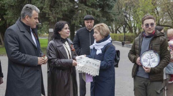 Надежда Ильинична передала съёмочной группе бейджи с Георгиевской лентой, сделанные руками детей, и старинный рушник, которому больше ста лет. «Это символ моей семьи. Один из двух рушников я дарю вам», — сказала она.